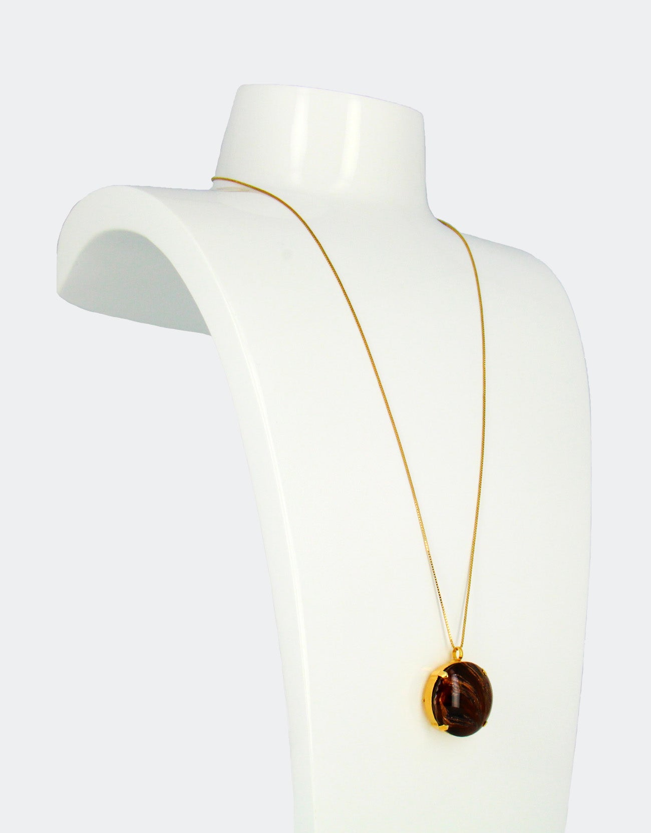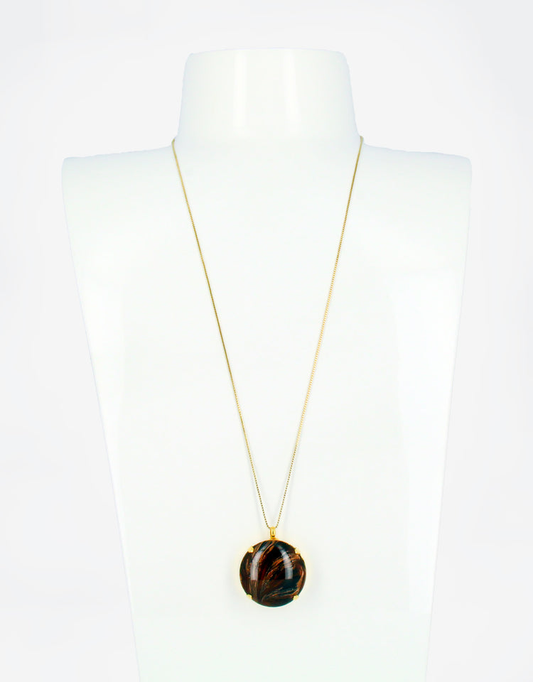 This majestic long Mars necklace is fit for a goddess! The vintage stone pendant hangs from an adjustable chain, making it easy to find the perfect length. The statement piece is sure to turn heads and add a touch of glamour to any outfit.